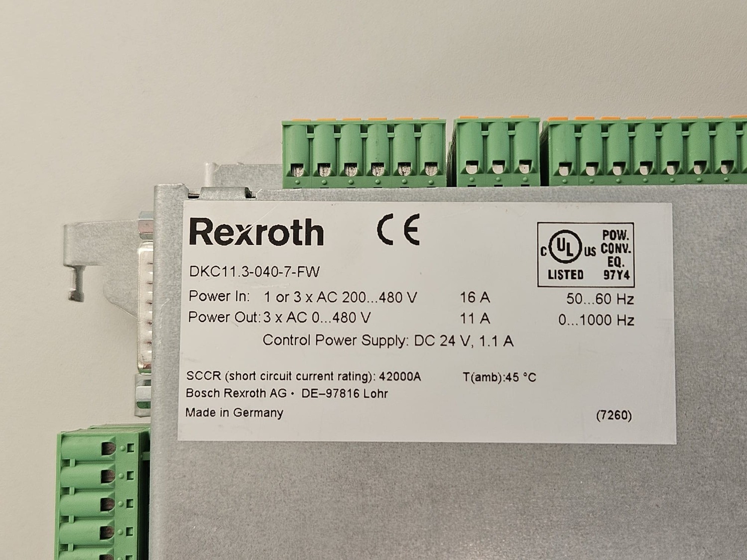 Power Out: 3 x AC 0…480V, 11A 0…1000Hz